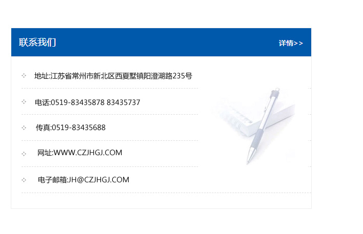 地址:常州市新北區友邦商務大廈1幢16、17層  電話:0519-85101652  傳真:0519-85112595  郵編:213022  網址:www.cz-jiayue_cn.nt-hypertherm.com  郵箱:xiajifengaa@163.com